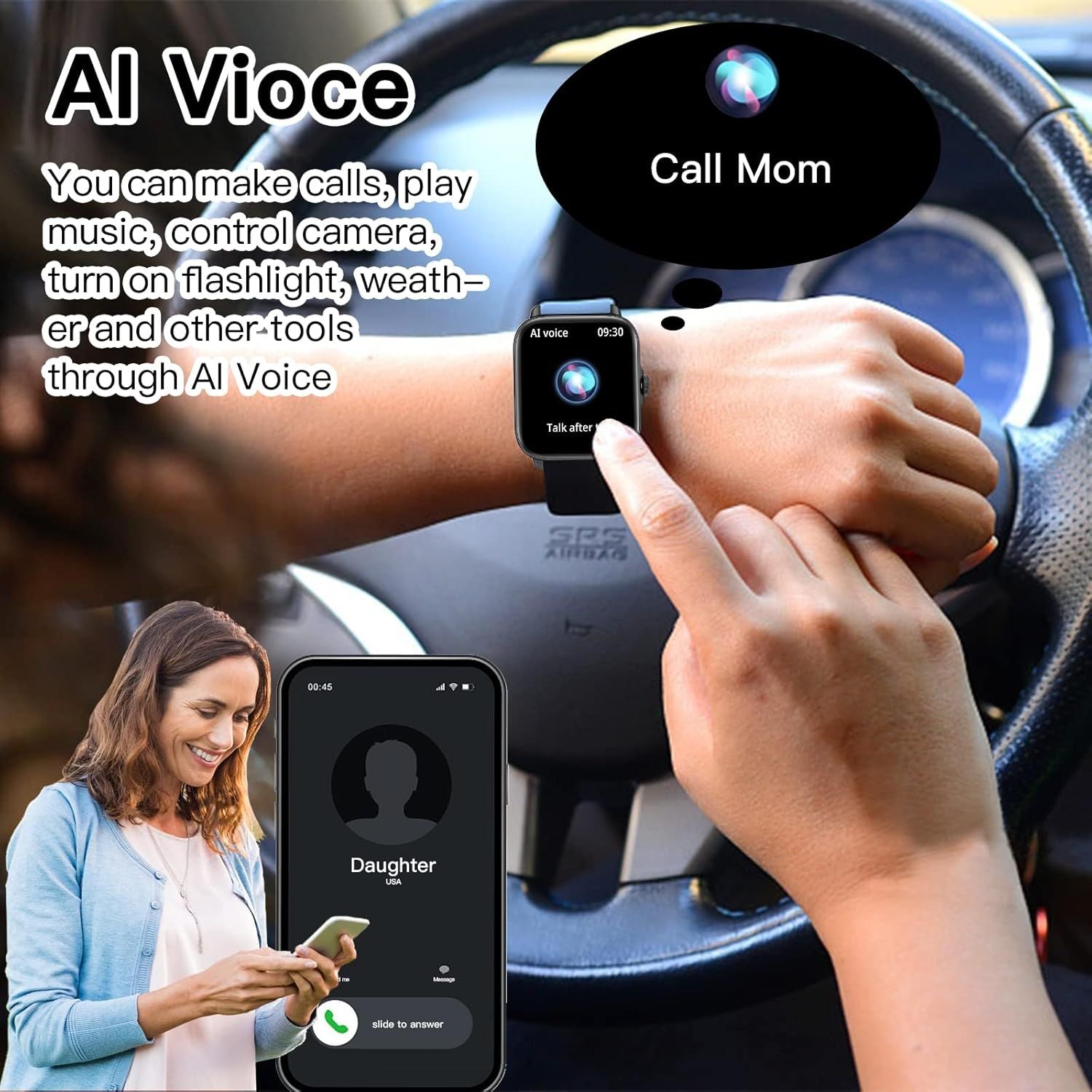 - ?AI Voice Control & Large Capacity Battery?AI voice control fitness watch and mobile phone, long press to say your order, you can make calls, control camera, music, mobile photo album, TikTok and other applications to facilitate your life; 235mAh large capacity battery, low power consumption, 10 days standby, 2-3 days of daily use, long-lasting battery life.