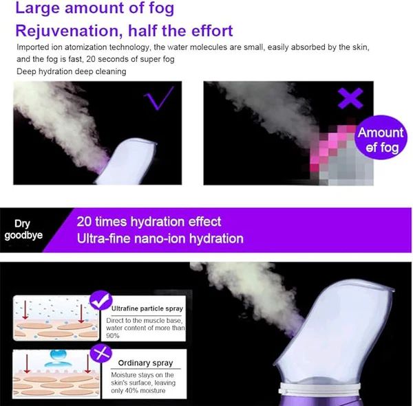 Fast Dimming: Quickly dimmable in 20 seconds, providing a deep moisturizing effect with strong and lasting fog. The nano steamer produces a warm mist that is harmless to the skin, offering an enjoyable experience.