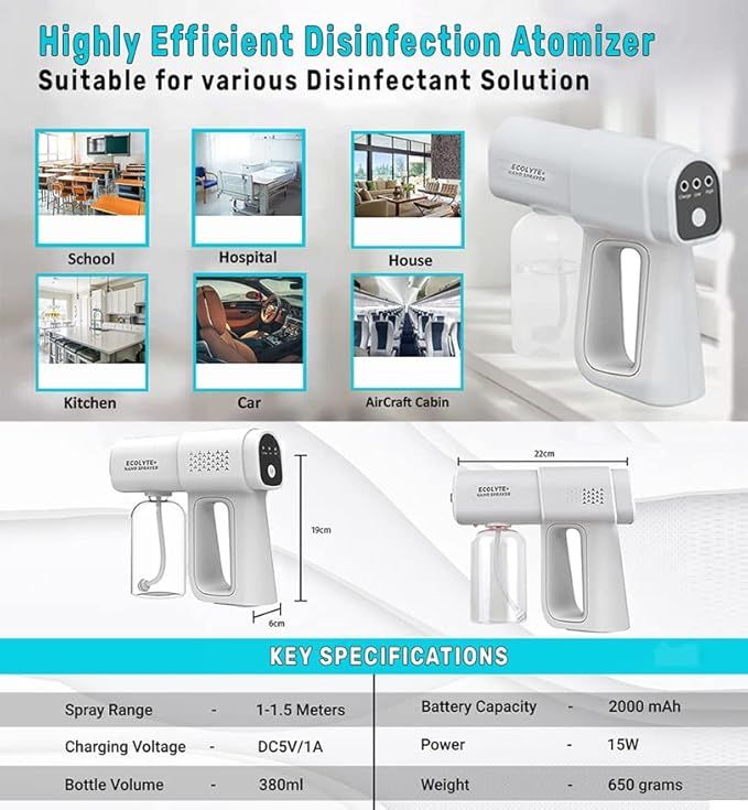 - Conveniently rechargeable with a blue light atomization feature for efficient disinfection