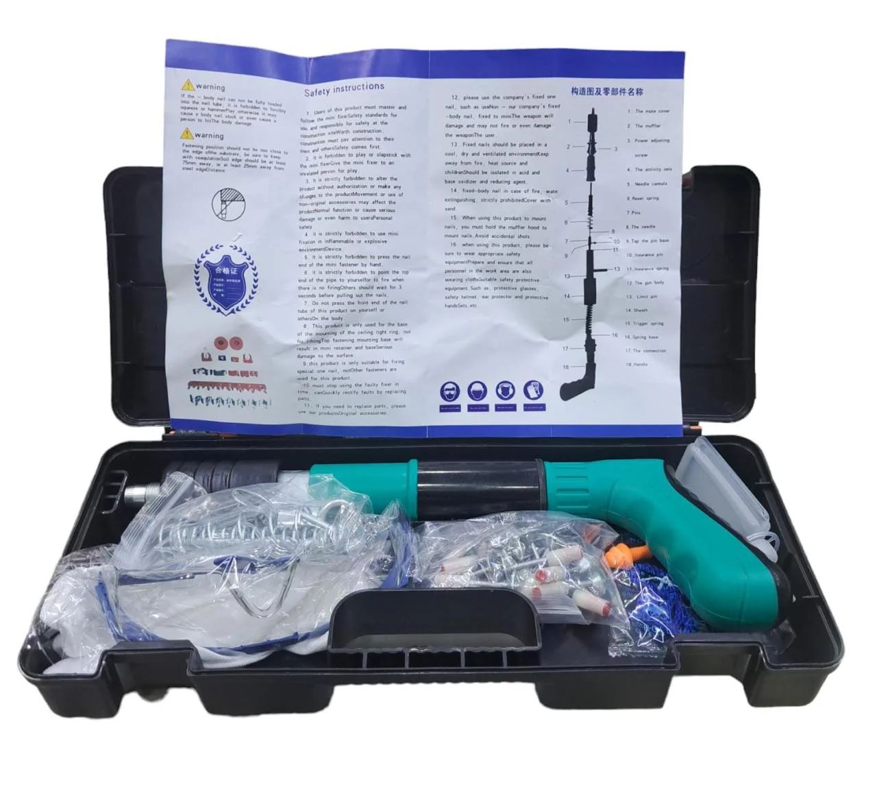 • Convenience: Comes with a plastic box for easy transportation and storage of the machine and nails.