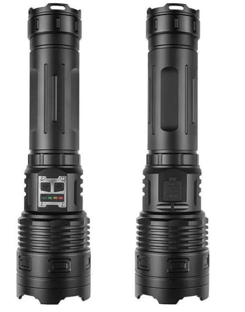 Illuminate your adventures with the Super Bright Rechargeable Tactical Laser Zoom Flashlight, the ultimate tool for all your outdoor and emergency lighting needs.